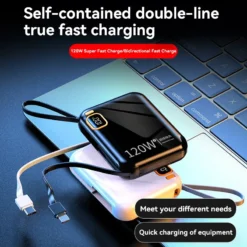 Lenovo 120W 50000mAh Portable Power Bank High Capacity Cable Two-way Fast Charging Mini Powerbank for iPhone Samsung 2024
