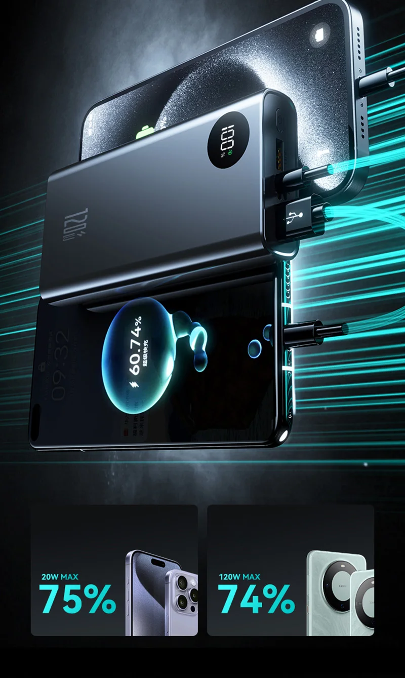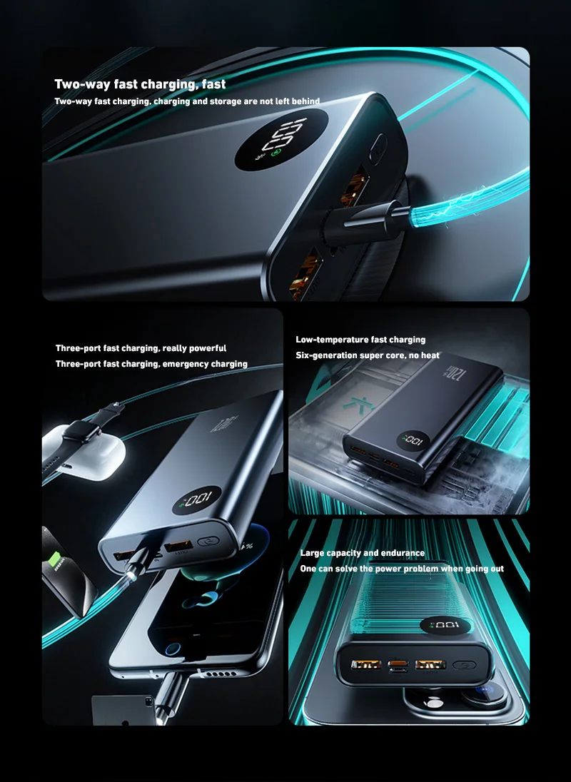 Lenovo 50000mAh High Capacity 120W Fast Charging Power Bank Portable Charger Battery Pack Powerbank for iPhone Huawei Samsung – 509