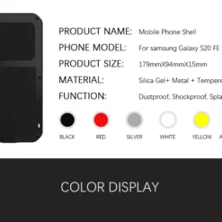 Description: 1. Quatity: 100% Original, high quality 2. Model: Perfectly fits for Samsung Galaxy S20 FE 5G 3. Function: Great protection from dirt, scratch and damages 4. Feature: Original Brand Waterproof Shockproof Aluminum Case Cover for For Samsung Galaxy S20 FE 5. Service: Real Free Ship + Fast Shipment + Quick Response + Do Customized Design 6. Drop ship support !! Wholesale big discount support !