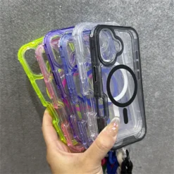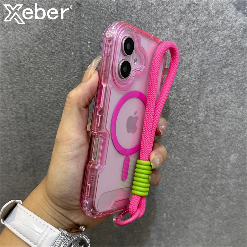 Luxury With Lanyard Clear For Magsafe Phone Case For iPhone 14 11 12 13 15 16 Pro Max Shockproof Armour Wrist Strap Back Cover