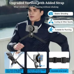 【Comfortable to Wear & Chest Strap Mount】This phone neck holder adopts an ergonomic design, consisting of an internal stainless steel tube, a sturdy aluminum bracket and a skin-friendly silicone wrap. Moreover, it is also equipped with an adjustable chest strap mount to enhance comfort and reduce vibration, ensuring that you will not feel tired even after long-term use.