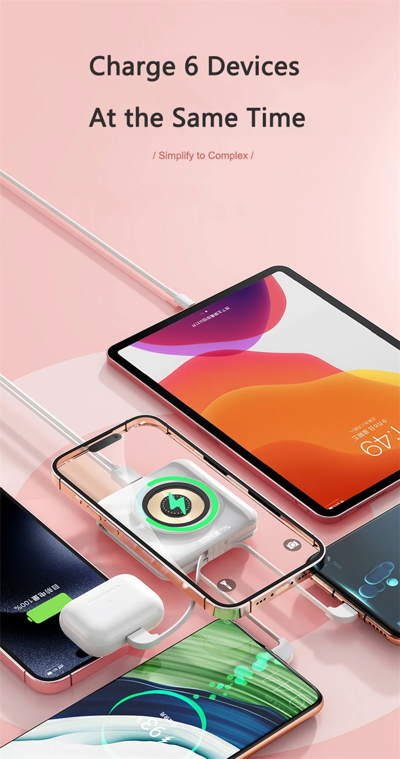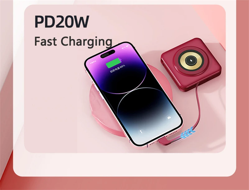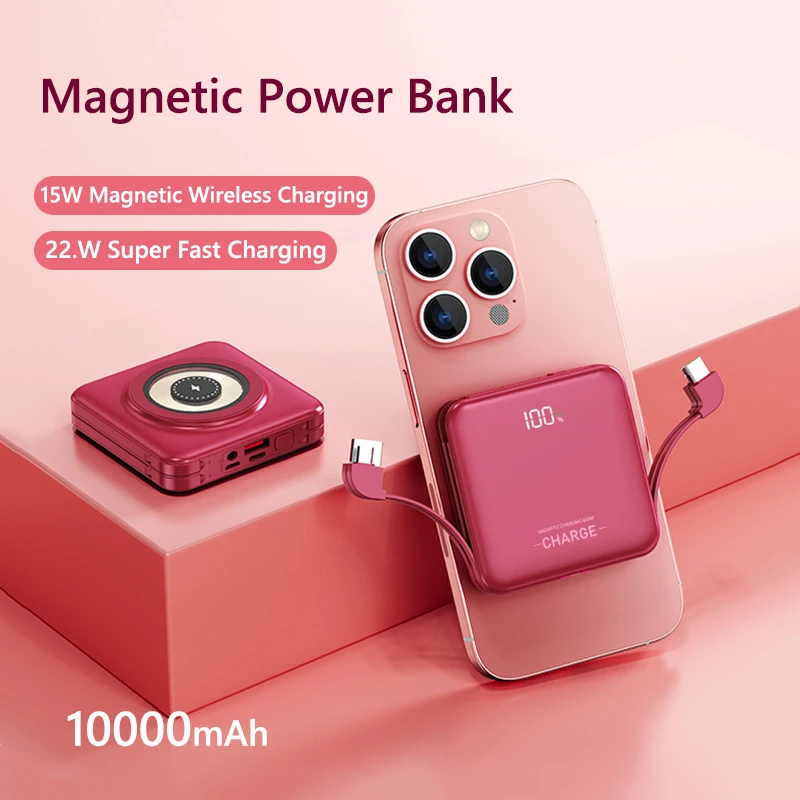 Magnetic Power Bank 10000mAh PD20W Fast Charging Magsafe Powerbank with Cable for iPhone Samsung Huawei Xiaomi External Battery