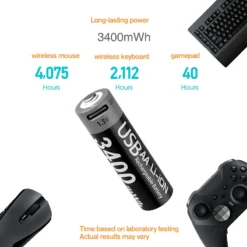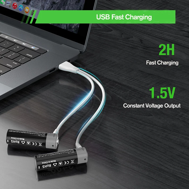 3400mWh 1.5V USB AA lithium-ion battery with high capacity provides stable voltage until the entire battery is depleted, allowing long-term use in the device.