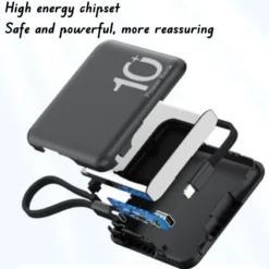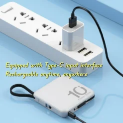 Mini Power Bank 10000mAh Portable External Battery Pack Built In Cable