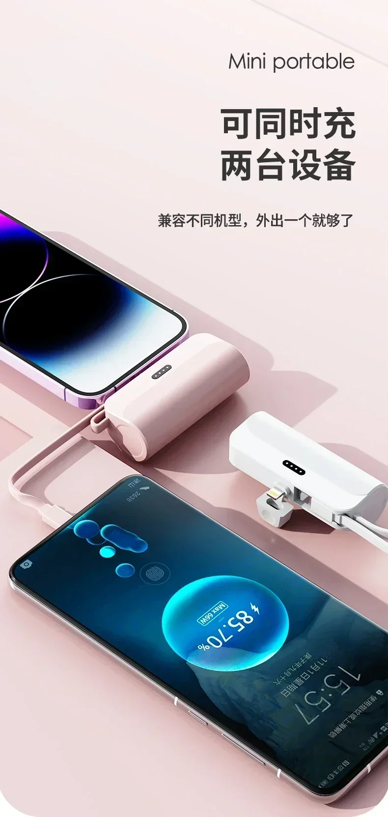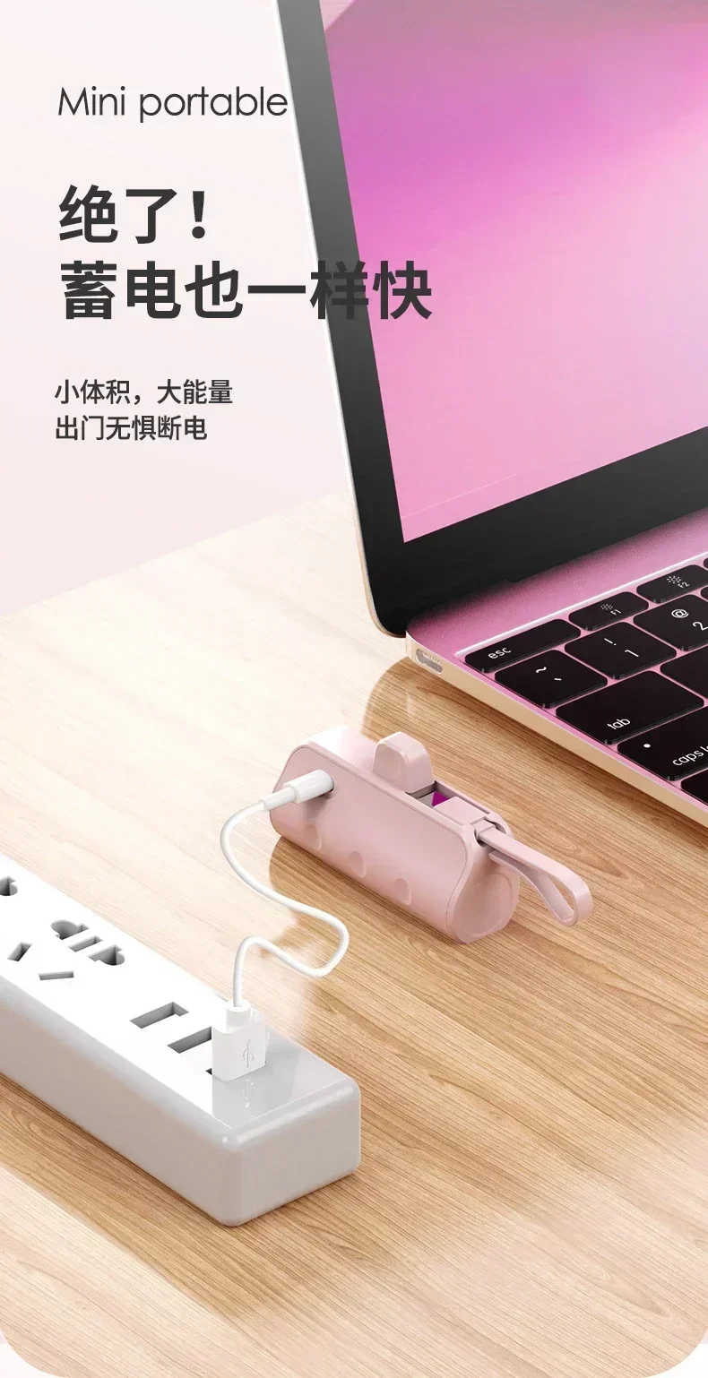 3. 2-in-1 Charging Cable: The two-in-one charging line is both a charging line and a lanyard. Power bank has compact mini size and large battery capacity, easy to carry.