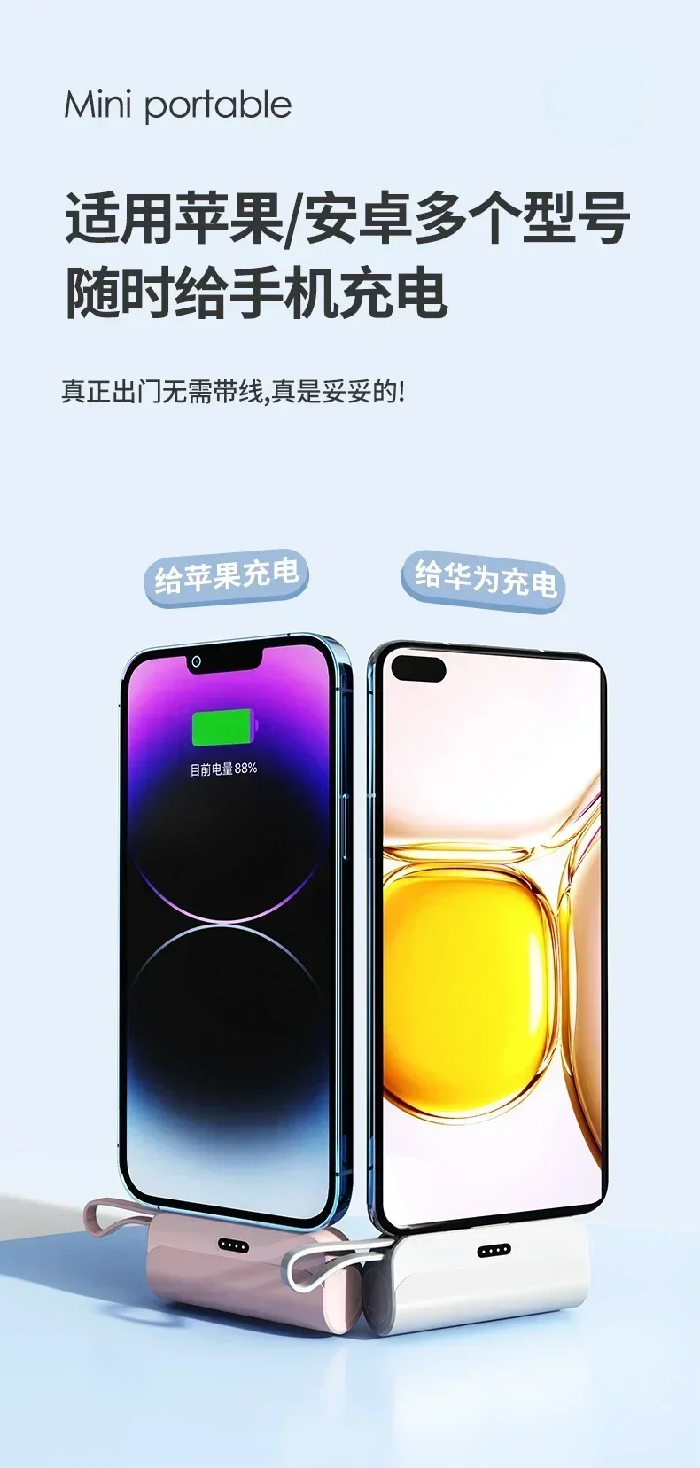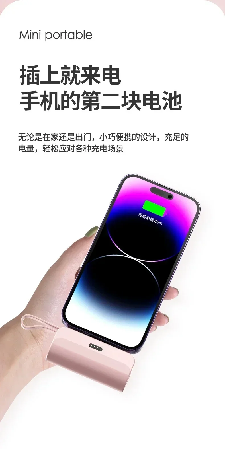 1. Plug and Play: Lipstick size, plug and play, no longer need to worry about the clutter of charging cables, charging phone anytime anywhere, which is very convenient.