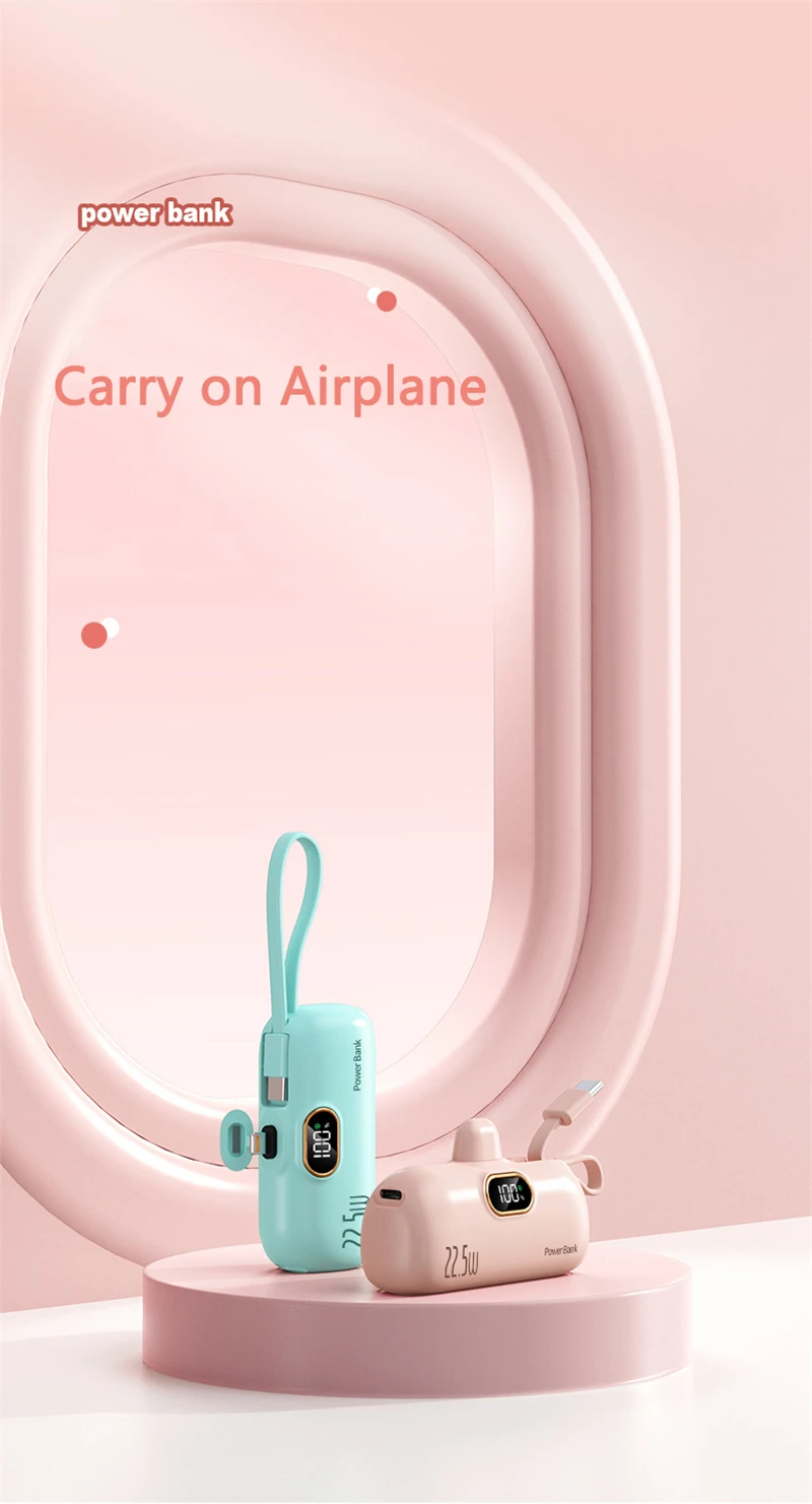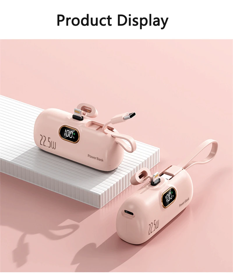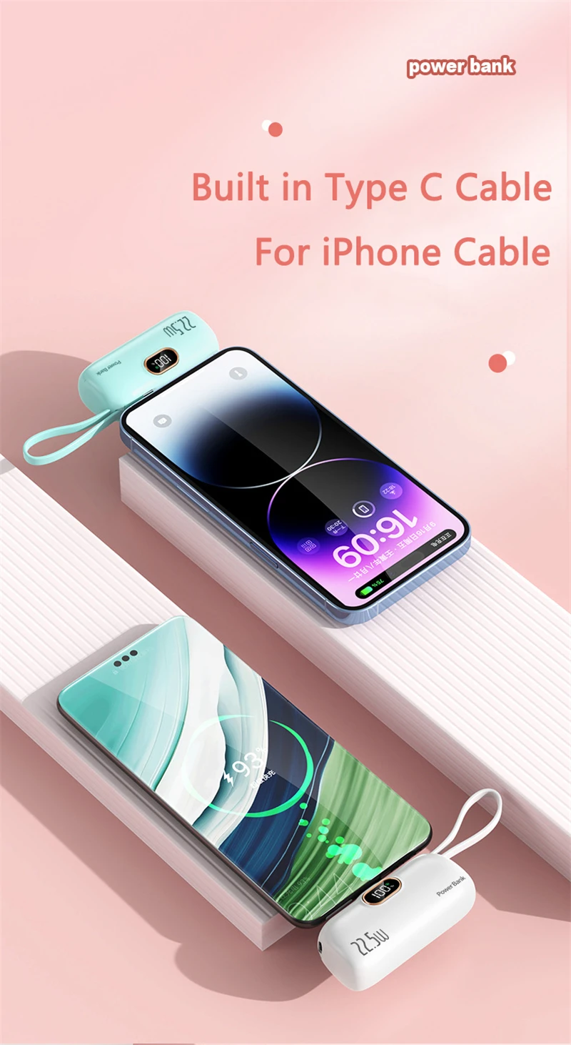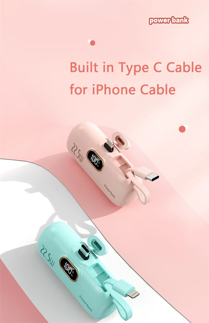 Mini Power Bank 5000mAh with Cable Plug 22.5W Fast Charging Powerbank Portable External Battery Charger For iPhone Huawei Xiaomi –