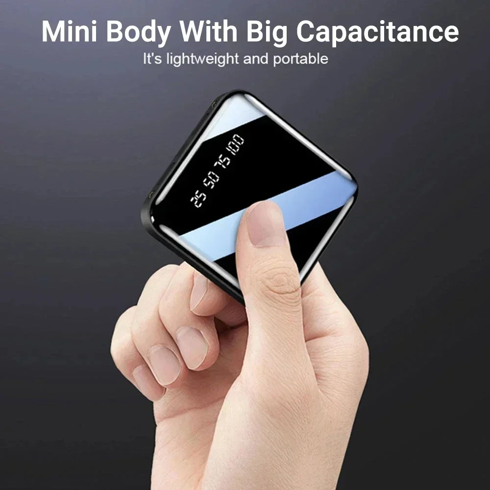 Name: Square 100% full screen Support Quick Charge Technology: Two-way Quick Charge Output Interface: 5V/2A Input Interface: Micro USB and USB Type C Size: 80*80*22.5mm Compatible Cellphone: For iPhone 7 8 X XS Xiaomi mi Huawei Sony HTC LG Samsung etc Package: 1 * Mini Power Bank 1 * Micro USB Cable