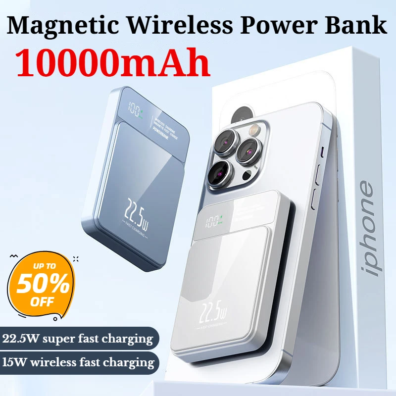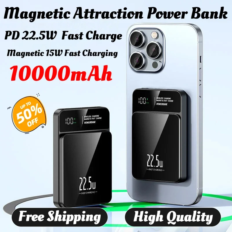 New Product Super Fast Charging 5000mah/10000 MAh Magnetic Wireless Power Bank Magsafe Mobile Power Supply Customized Printing