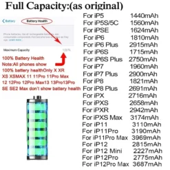 New 2024 Zero-cycle High-quality Battery For iPhone 7 6S 6 5S 5 7Plus 8Plus SE 2020 X XR XS 11 PRO MAX 6Plus 7G Plus – 509