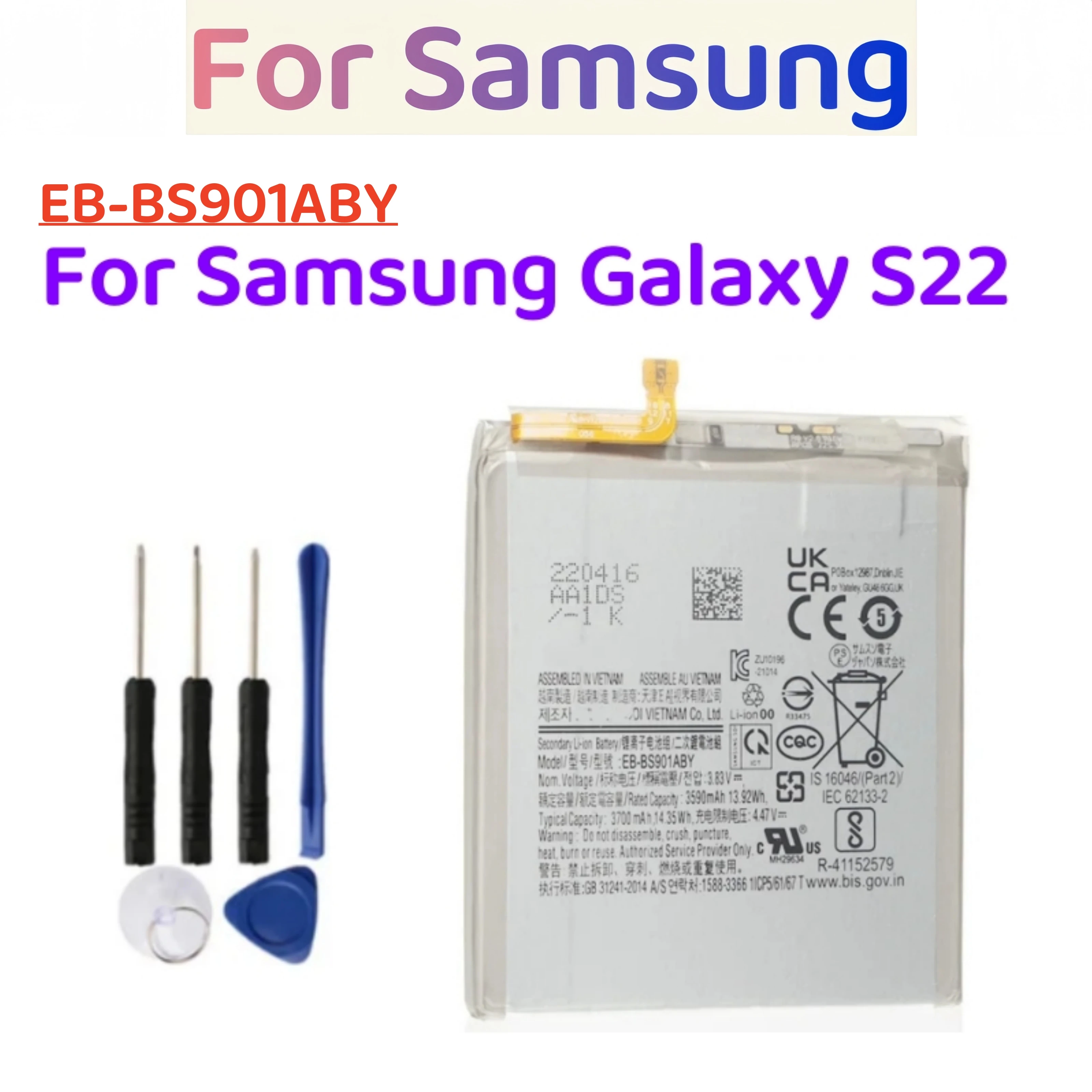 New EB-BS901ABY Battery For Samsung Galaxy S22 Mobile Phone Batteries 3700mAh EB-BS901ABY Battery + Free Tools – 509