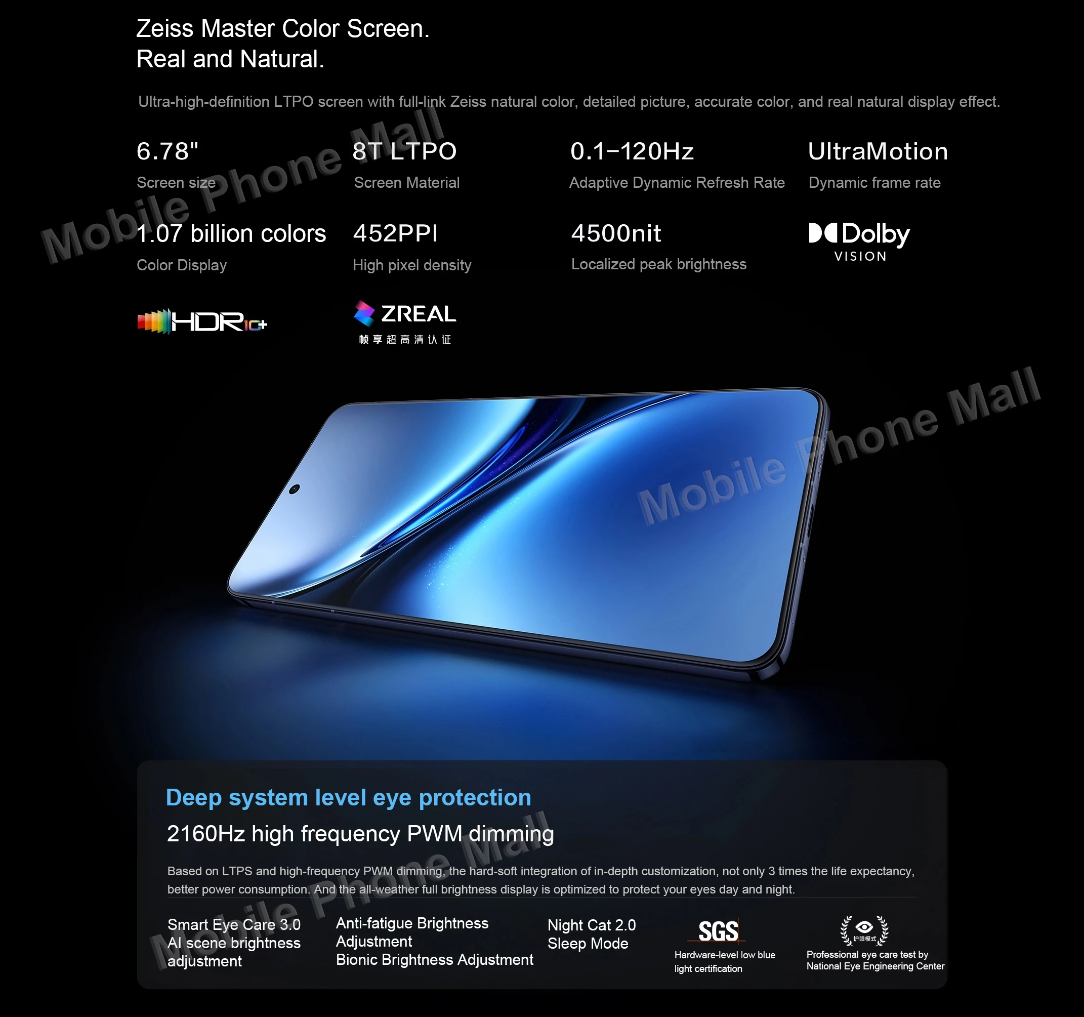 LTPO AMOLED, 1B colors, 120Hz, HDR10+, Dolby Vision, 4500 nits (peak)