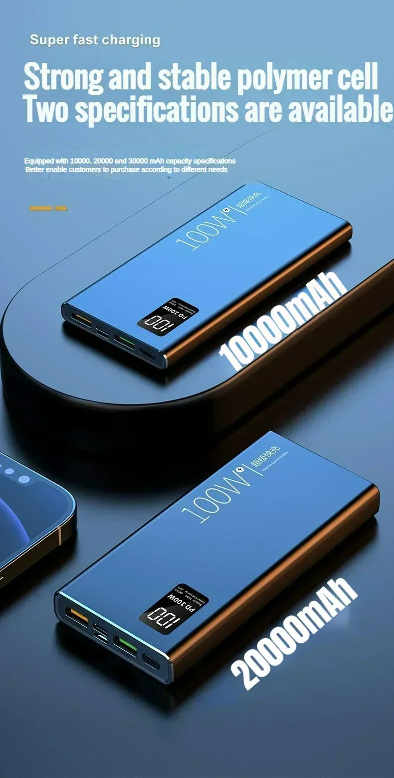 New Power Bank 30000mAh 100W Dual Port Super Fast Charging Portable EXternal Battery Charger For iPhone Xiaomi Huawei Samsung – 509