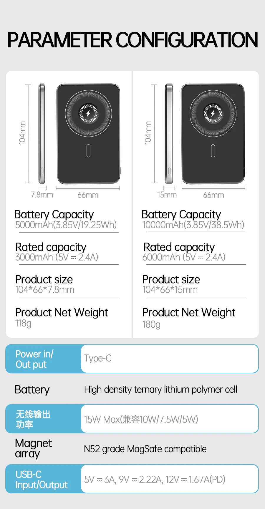 - Wireless Charger For Magsafe Powerbank,Fast Charger Powerbank For iWatch S10 S9 S8 S7 S6 For AirPods Pro