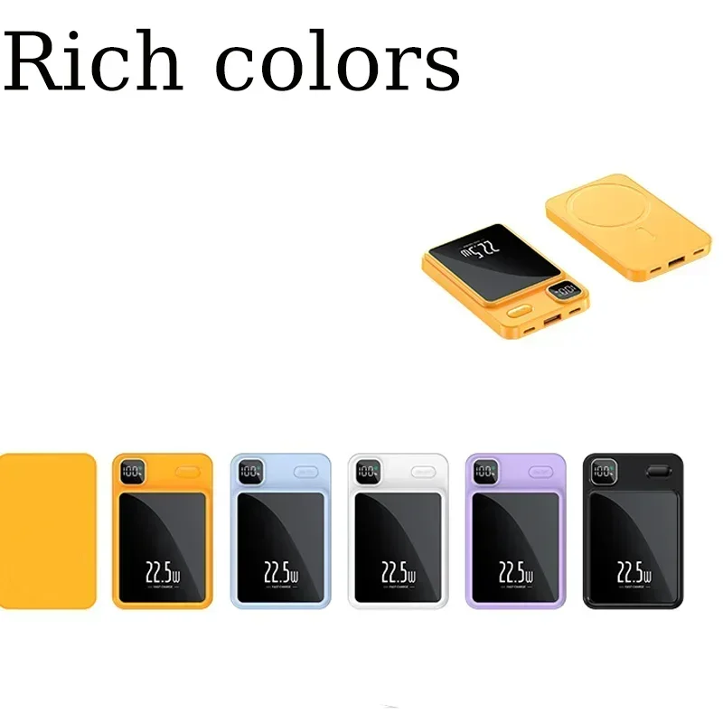 Supports 22.5W fast charging/supports 15W Qi wireless charging/supports magnetic Qi wireless charging/supports Type C input and output/supports USB output/with magnetic ring suitable for wireless smartphones