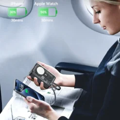 22.5W USB C input and output, recharge the iphone and iwatch charger within 3h.