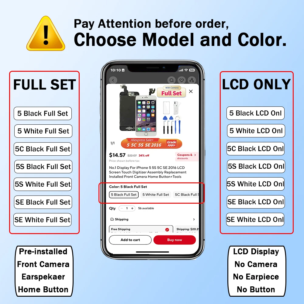 No.1 Display For iPhone 5 5S 5C SE 2016 LCD Screen Touch Digitizer Assembly Replacement Installed Front Camera Home Button+Tools