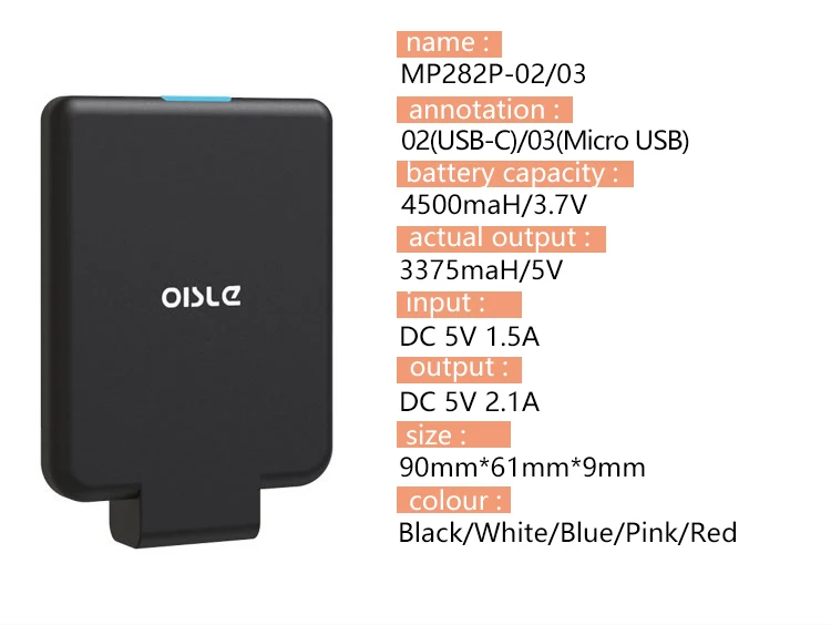 MP282P-03: 4500mAh, input:type-c/output:double side micro usb