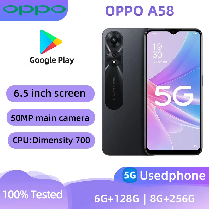 Oppo A58 5g Smartphone Android CPU Dimensity 700 6.5inches Screen RAM 8G ROM 128G 5000mAh Battery used phone