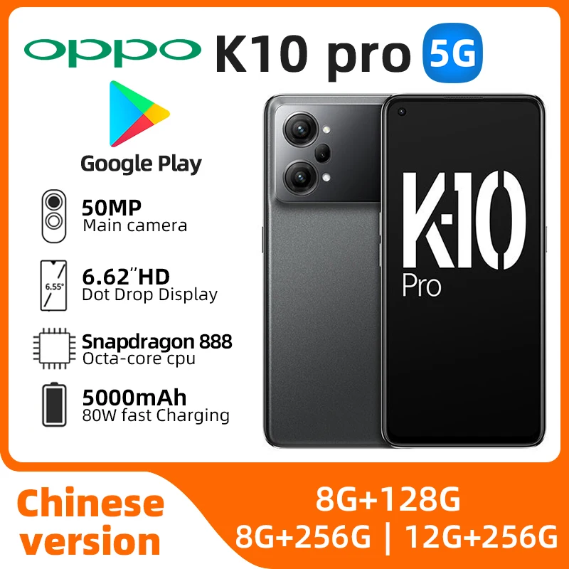 Oppo K10 Pro 5G Snapdragon 888 Screen Fingerprint 6.62″ Mobile Phone AMOLED 120HZ 50.0MP Camera 80W Charger 5000mAh used phone