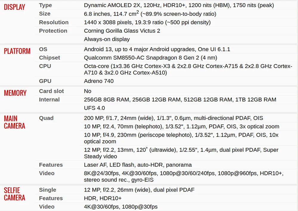 The Samsung Galaxy S23 Ultra 5G S918U/U1 256GB ROM is with 8GB RAM, 512GB ROM is with 12GB RAM.