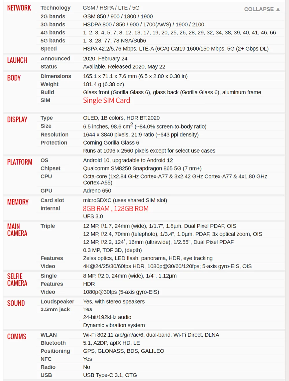 XQ-AT52 is 2 Sim card,8GB RAM,256GB ROM