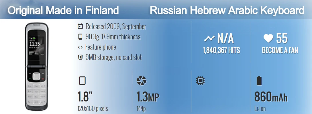 Original Unlocked 2720 fold 2G Mobile Phone Russian Arabic Hebrew English Keyboard Made in Finland Unlocked Free shipping