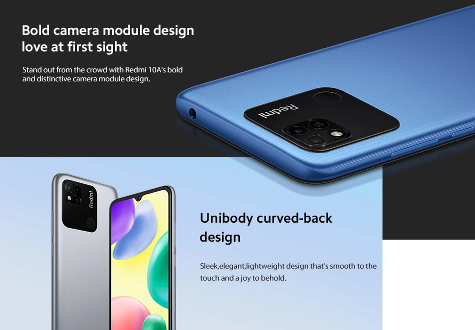 Stand out from the crowd with Redmi 10A’s bold and distinctive camera module design.