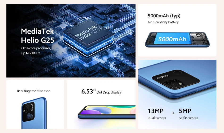 13MP dual camera | 5000mAh battery | 6.53″Dot Drop display | MediaTek Helio G25 Octa-core