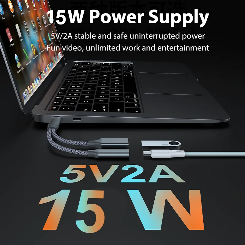 – One Drag Two Adapter.Support mobile phone /tablet connectUSB/mouse /keyboard /card reader,etc