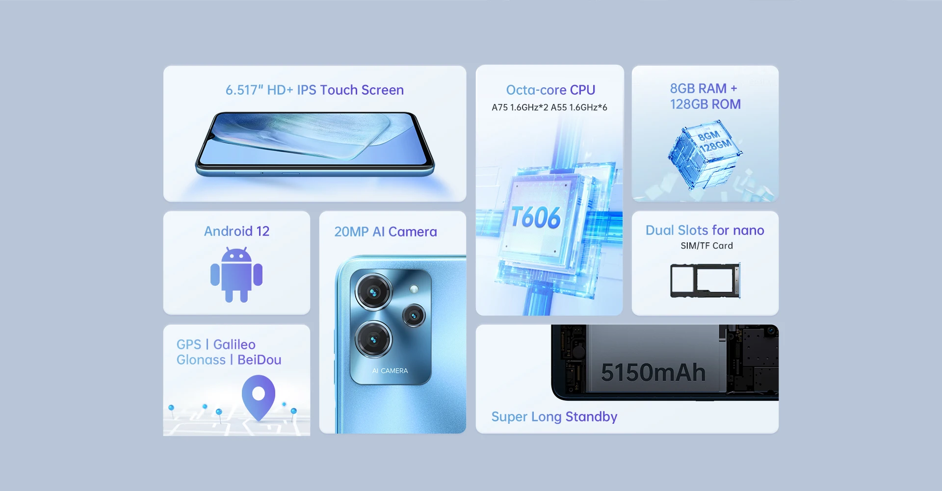RAM+ROM –8GB +128GB,OS-Android 12