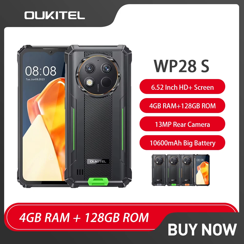 Oukitel WP28 S 4G Rugged Smartphone Android14 10600mAh Battery 8GB (4+4)+128GB Mobile Phone 6.52 Inch HD+ 13MP Camera Cellphone