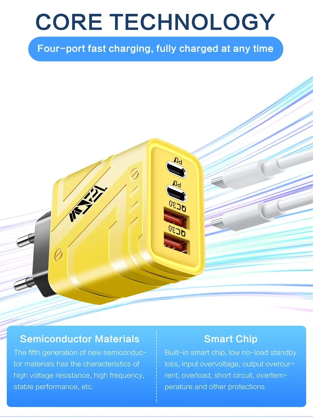 USB Charger 120W Type C Fast Charging Phone Power Adapter For iPhone Samsung Xiaomi Huawei Quick Charge EU/US Plug Wall Charger