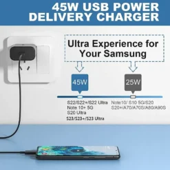 PD 45W Fast Charging For Samsung Galaxy S22 S23 Ultra Note10 Plus Mobile Phone USB Type C Cable Fast Quick Charging Wall Adapter