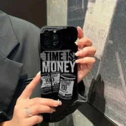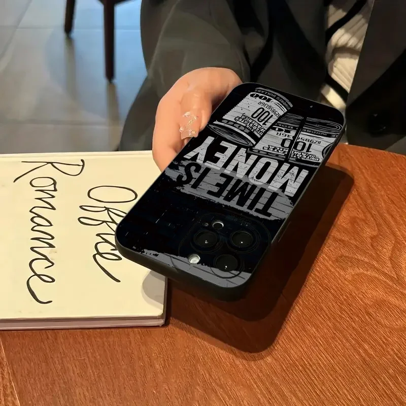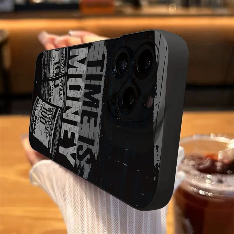 Phone Case For iPhone 16 Pro Max 15 14 13 12 11 XS X XR 7 8 Plus SE 2022 Time Is Money Printed Camera Protection Silicone Cover – 509