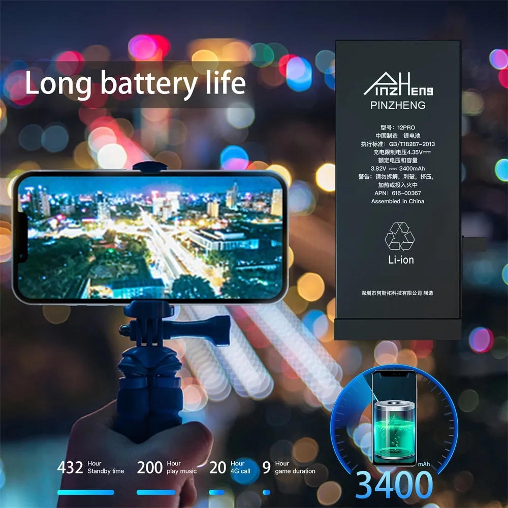 PINZHENG Real High Capacity Battery For iPhone X XR XS 11 12 13 Mini Pro Max Promax Replacement Bateria Warranty One Year