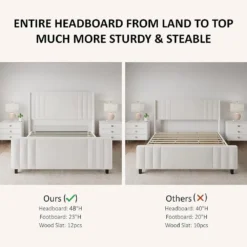 - 【Ship Only 1 Box】Clear instruction, assemble tools and numbered parts are all packed in 1 box. No waiting! Two people can assemble this upholstered bed frame within 30 mins