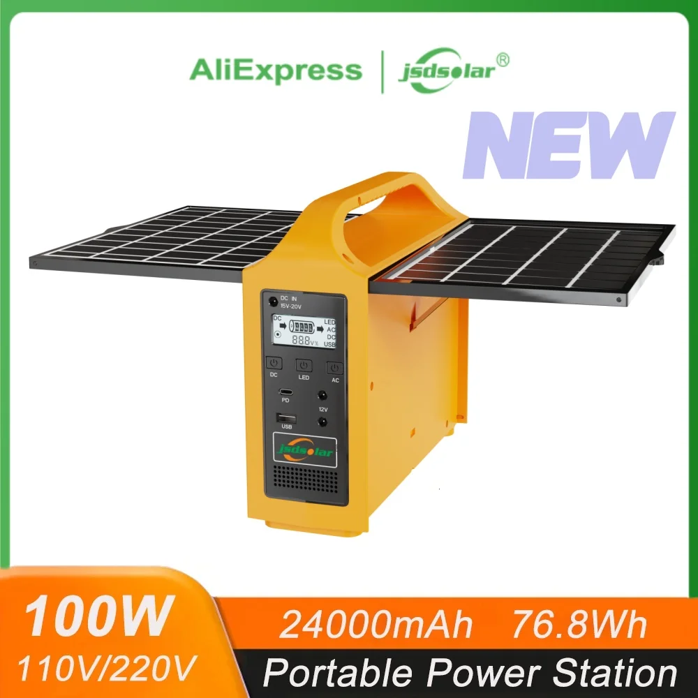 New jsdsolar Portable Solar Power Station Power Generator 100W 110/220V LED Light Emergency Solar Power Bank for Outdoor Camping