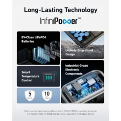 - A Decade of Power: Trust in a decade-long journey with the SOLIX C1000 Portable Power Station, featuring exceptional battery longevity with its LiFePO4 Battery, offering 3,000 battery cycles over a 10-year lifespan, ensuring reliability for years to come.