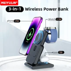 MEIYULIN 3in1 Thin Magnetic Portable Wireless Power Banks External Fast Charge Spare Battery for Magsafe For iPhone Apple Watch