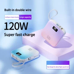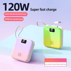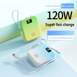 Power Bank 50000mah Mini Portable Slim Built-in 2 Cable Super Fast Charging Gradient Color Mobile Power Bank For Iphone Xiaomi