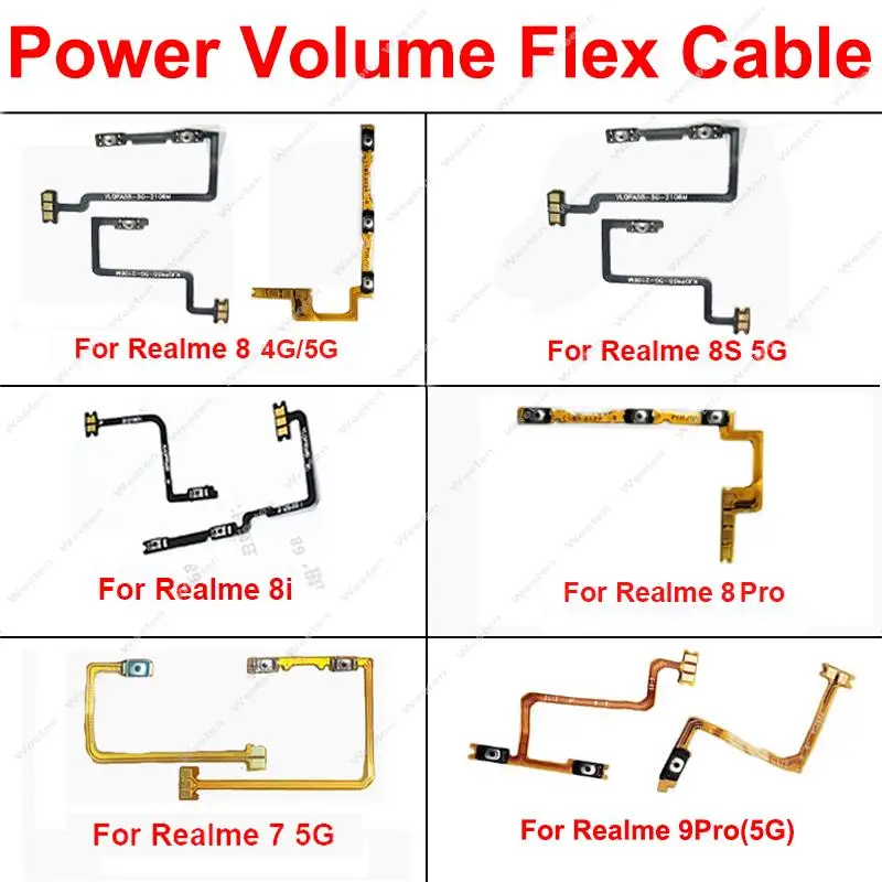 For Realme 7 8 8i 8S 8 9 Pro 4G 5G Side Power Volume Keys Flex Ribbon Mini Trigger Parts