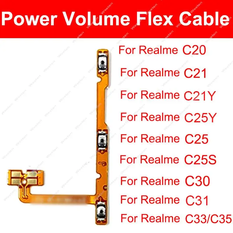 Power Volume Flex Cable For Realme C20 C21 C21Y C25 C25Y 25S C30 C31 C33 C35 Side Key Power Volume On Off Side Button Flex Parts
