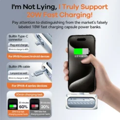 REMAX 20W Fast Charging Power Bank Portable Charger For iPhone 15 14 Pro MAX 13 12 11 Xiaomi Samsung Huawei Mini Powerbank Fold – 509