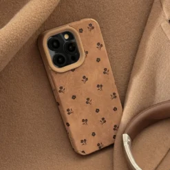 Retro Simplicity Full Screen Black Flower Matte Shockproof Protective Phone Cover Case for iPhone 16 15 14 13 12 11 Pro Max Plus – 509