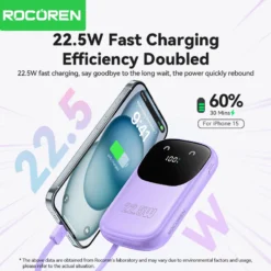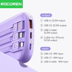 Rocoren 22.5W Fast Charging Power Bank With 3 Cable Mobile External Portable Battery Charger powerbank For iPhone Samsung Xiaomi – 509