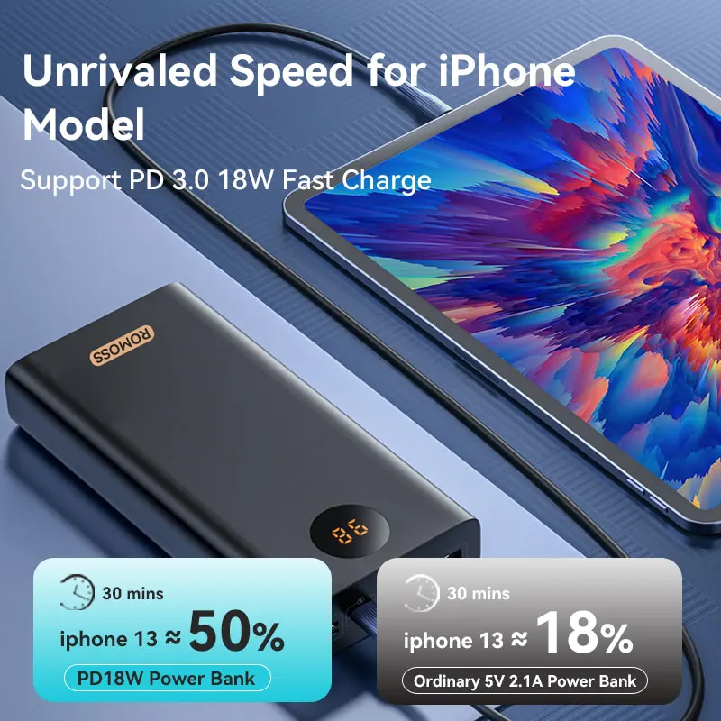 PD 18W Power Bank: iPhone 13 ≈ 50%charged in 30 minutes