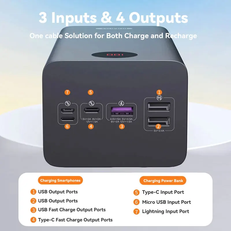 60000mAh High-capacity / 18W PD3.0+OC3.0 Two-way Quick Charge /Huawei SCP22.5W / Super Fast Charge/ 3 input / 4 output