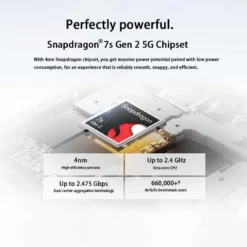 CPU————Snapdragon 7s Gen 2 4nm Process, Octa-core, Up to 2.4Ghz. GPU:Adreno 710