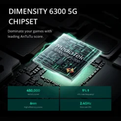 CPU————–Dimensity 6300 5G Chipset, 8 cores two cluster 64-bit processor, Up to 2.4GhzScreen———- 6.72″ 120Hz LCD Eye Comfort Display, FHD+ 2400×1080, Up to 120Hz Refresh Rate